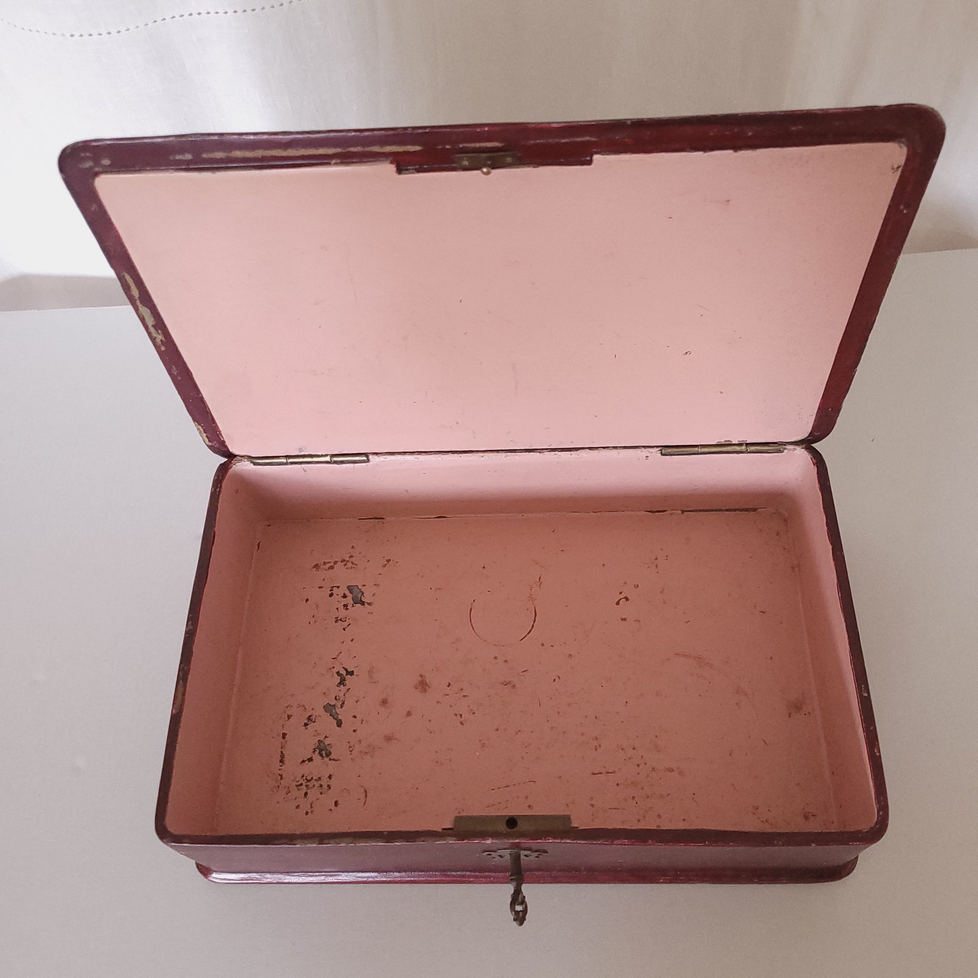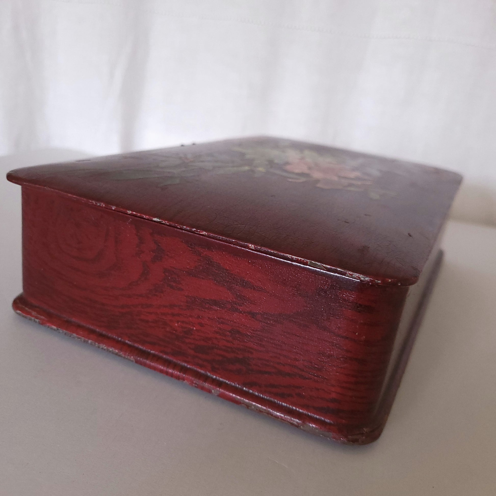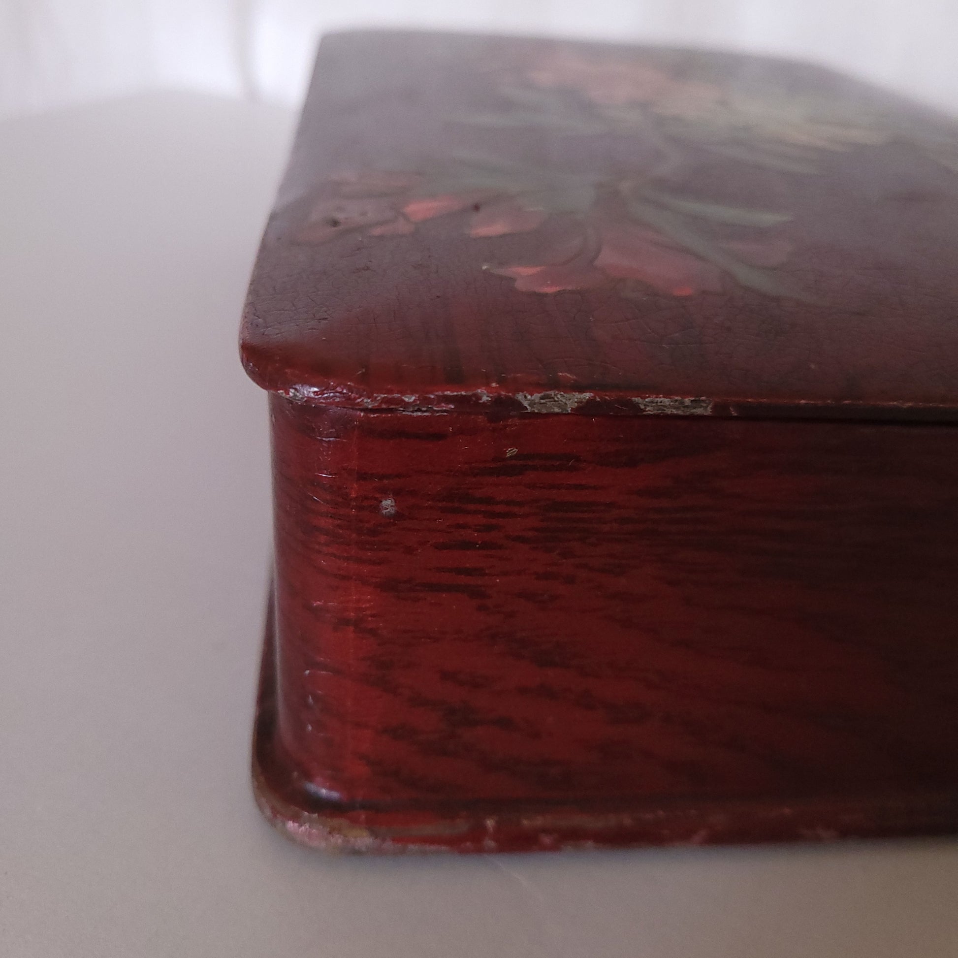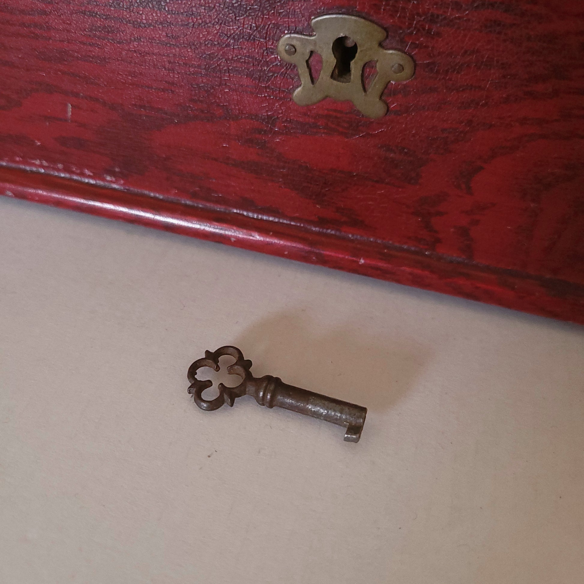 Boîte en bois Art nouveau au décor floral peint à la main, accompagnée de sa clé pour un rangement élégant et sécurisé.