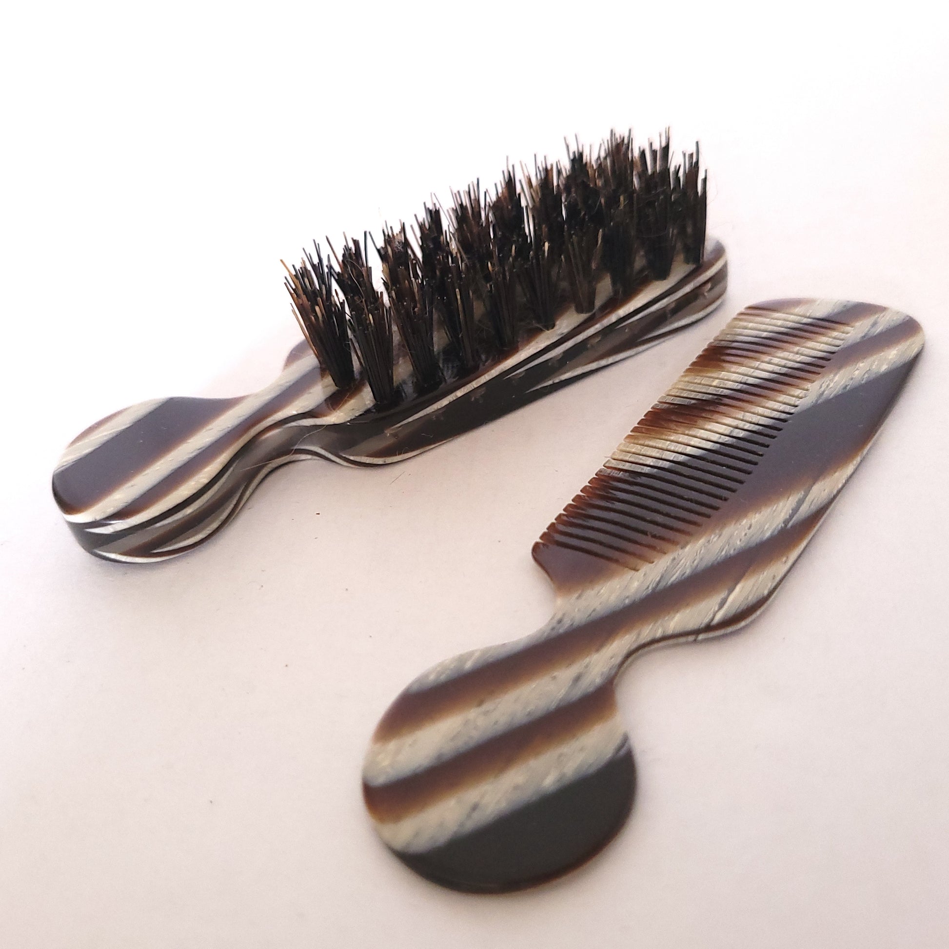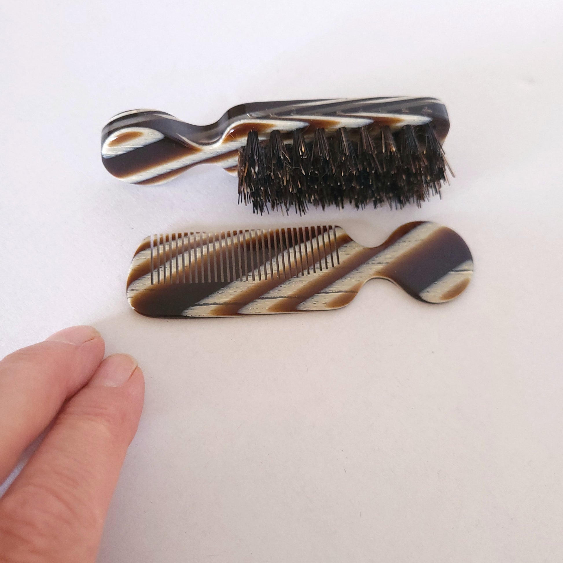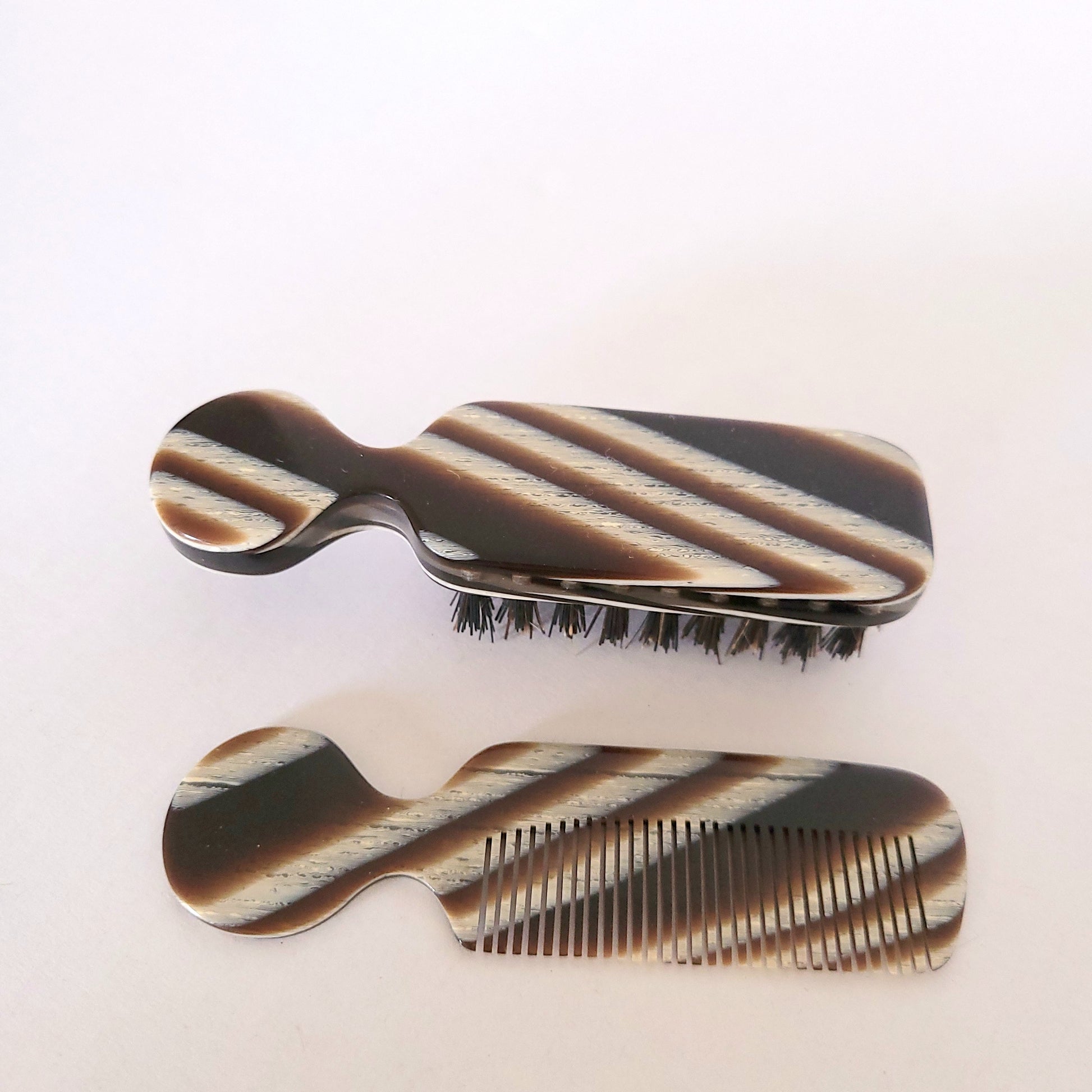 Ce petit ensemble comprend une brosse et un peigne à barbe au design élégant de l'époque Art déco.