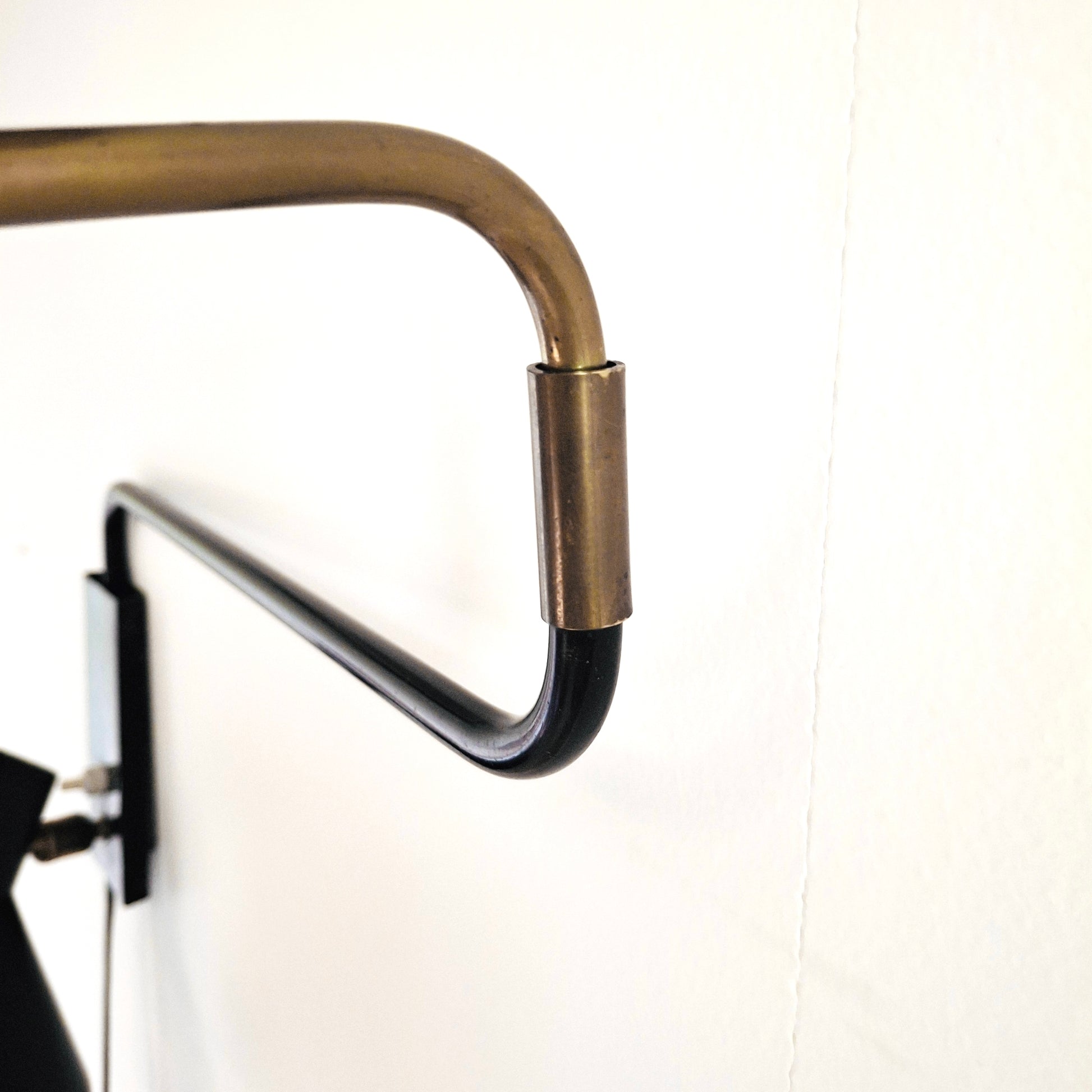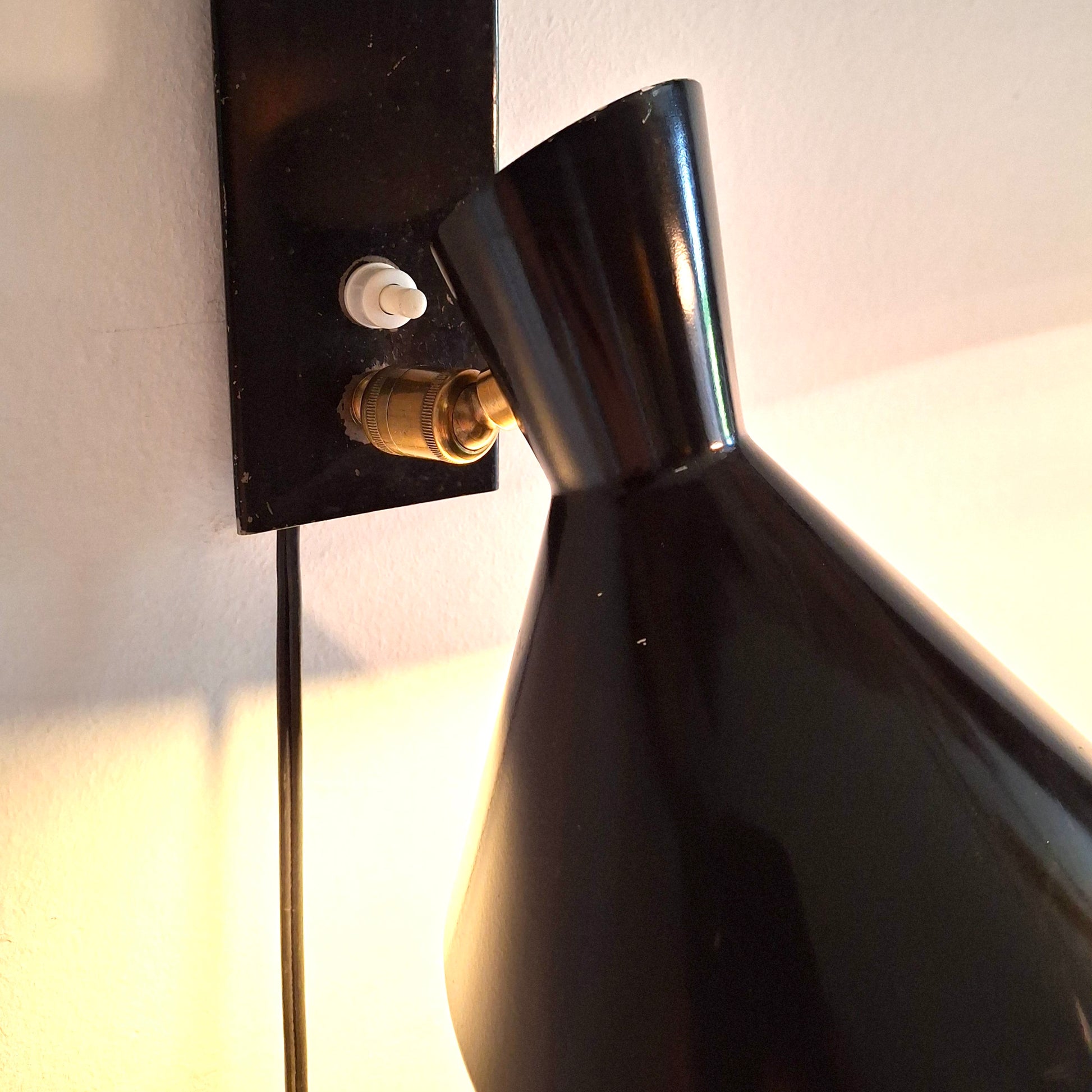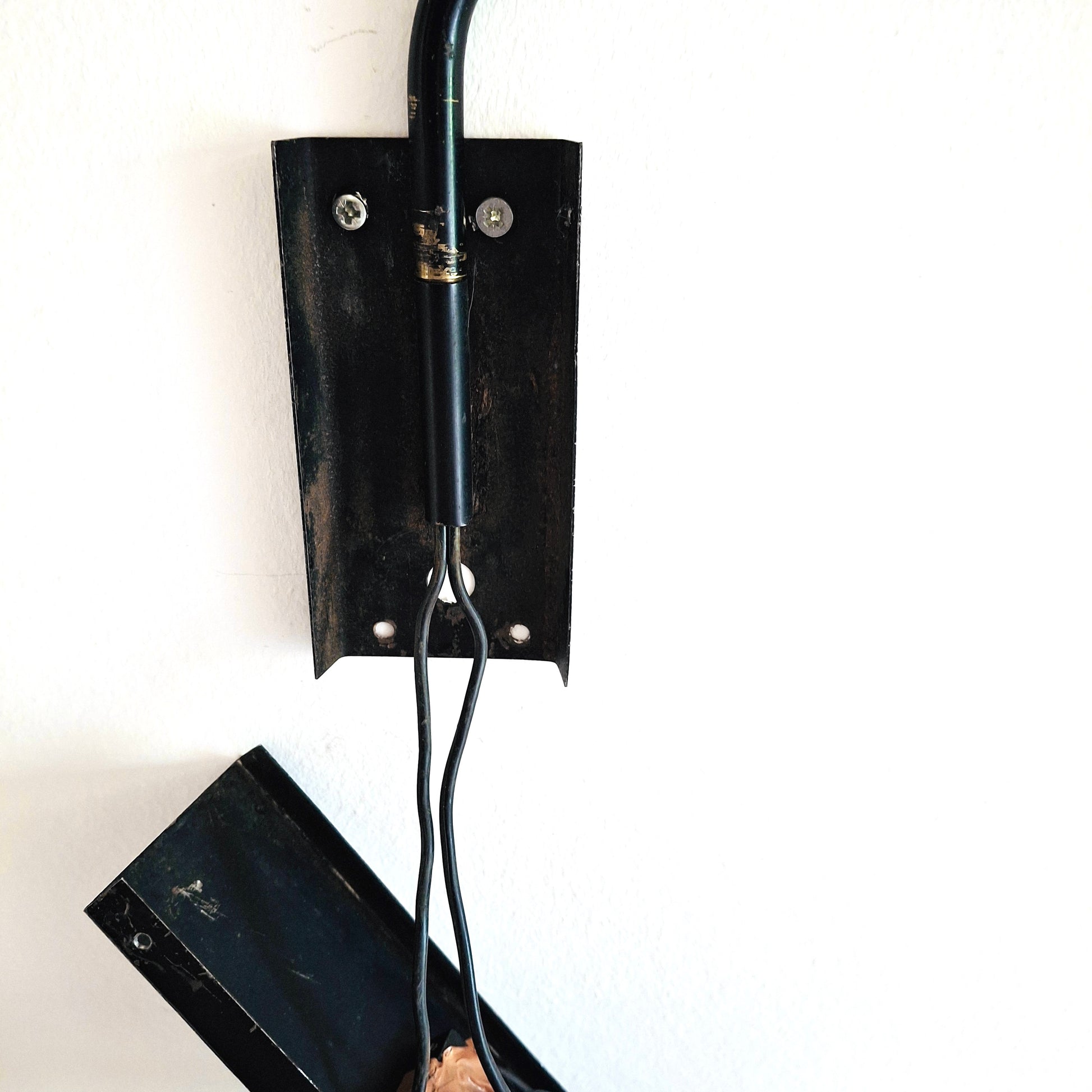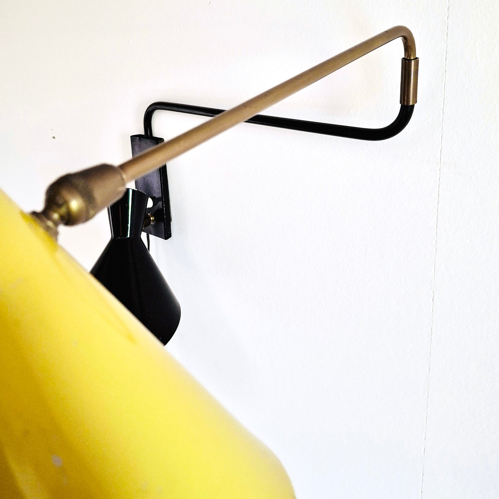 Applique murale en métal noir et jaune des années 60. Deux abats jour.