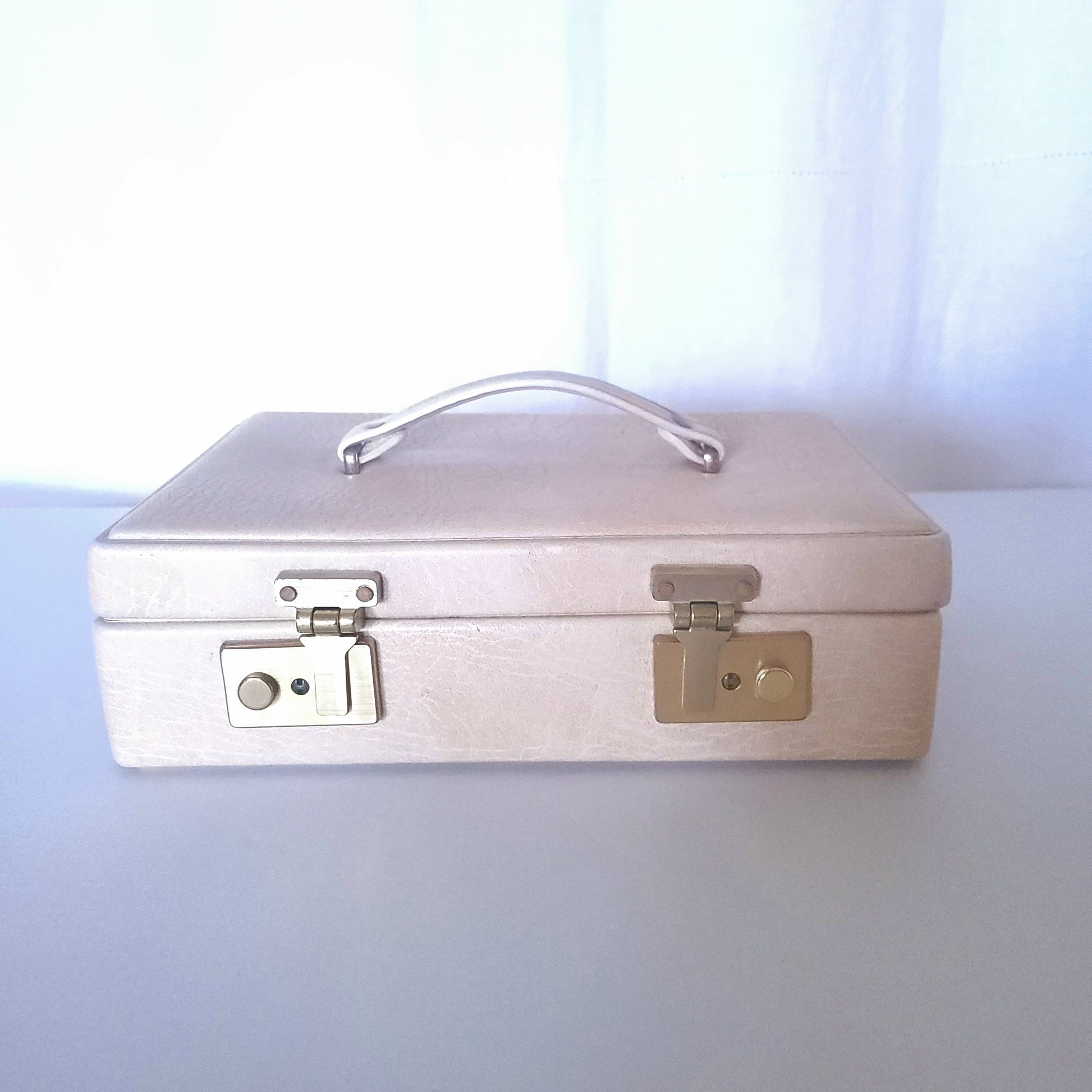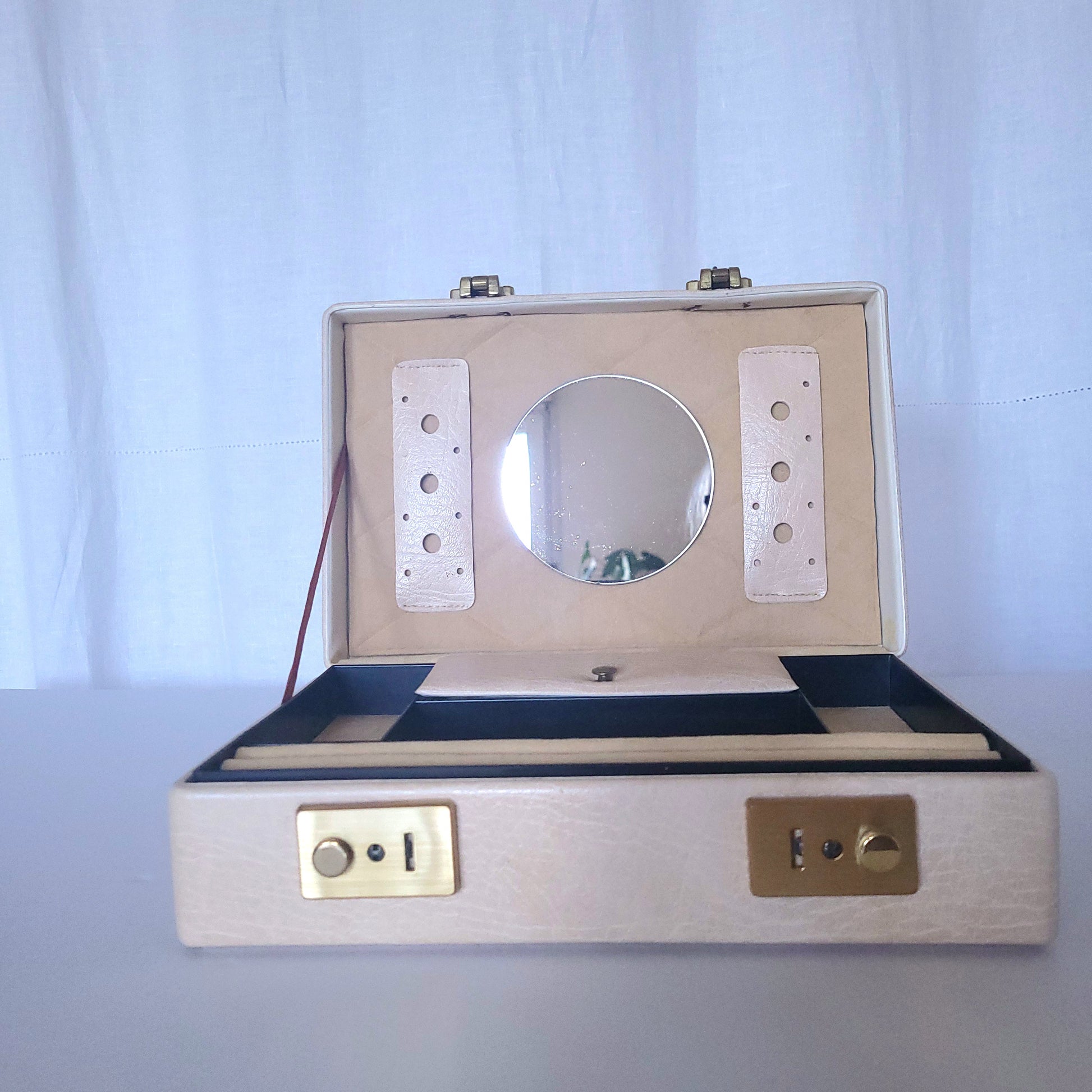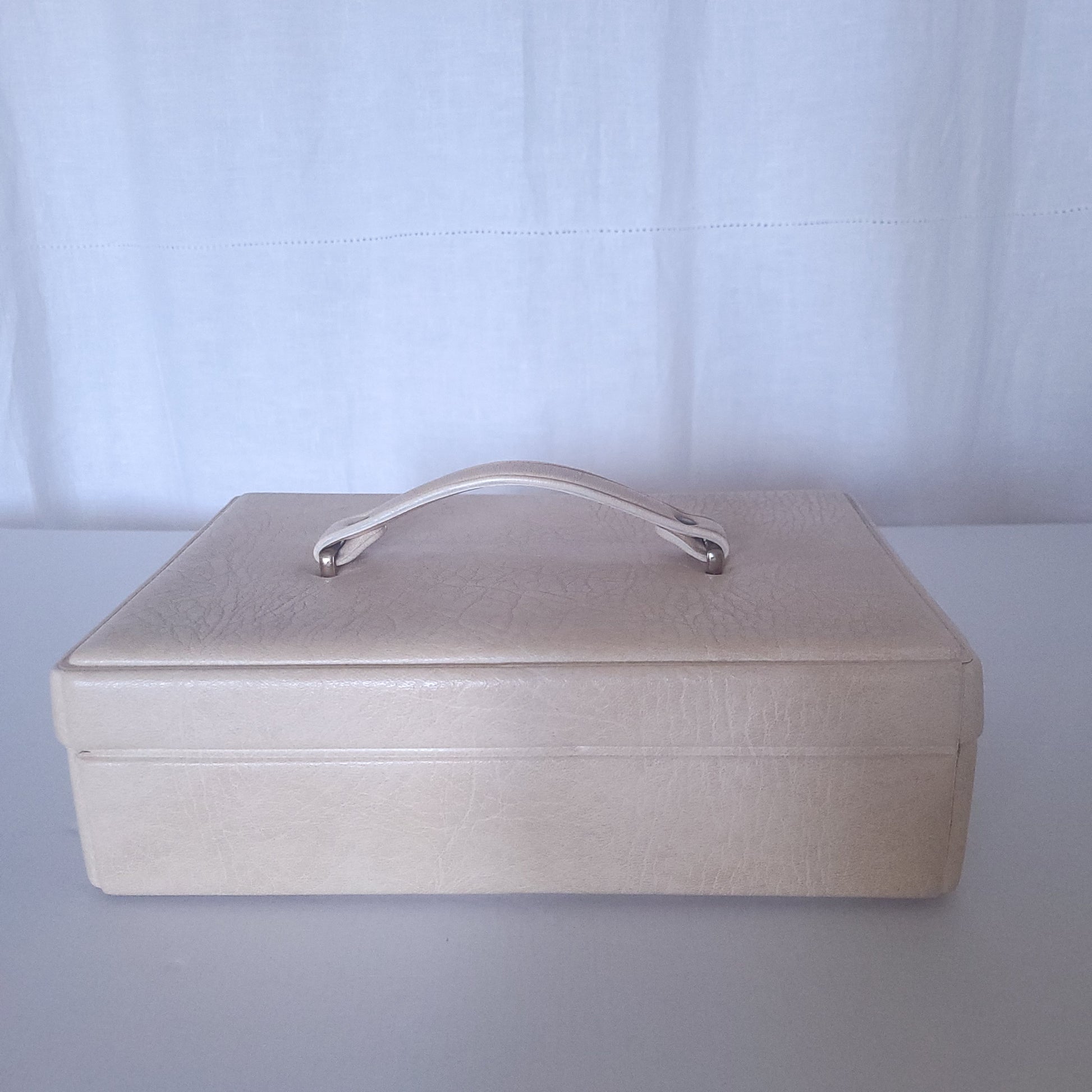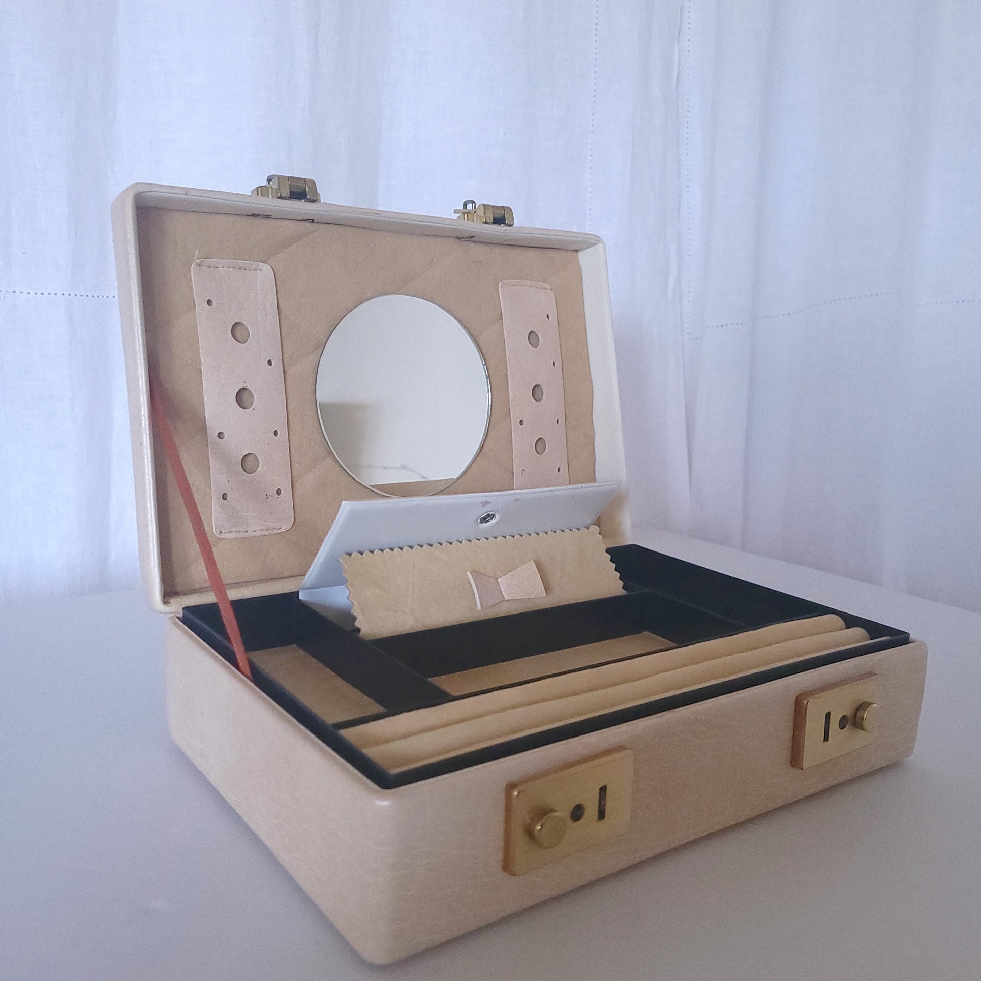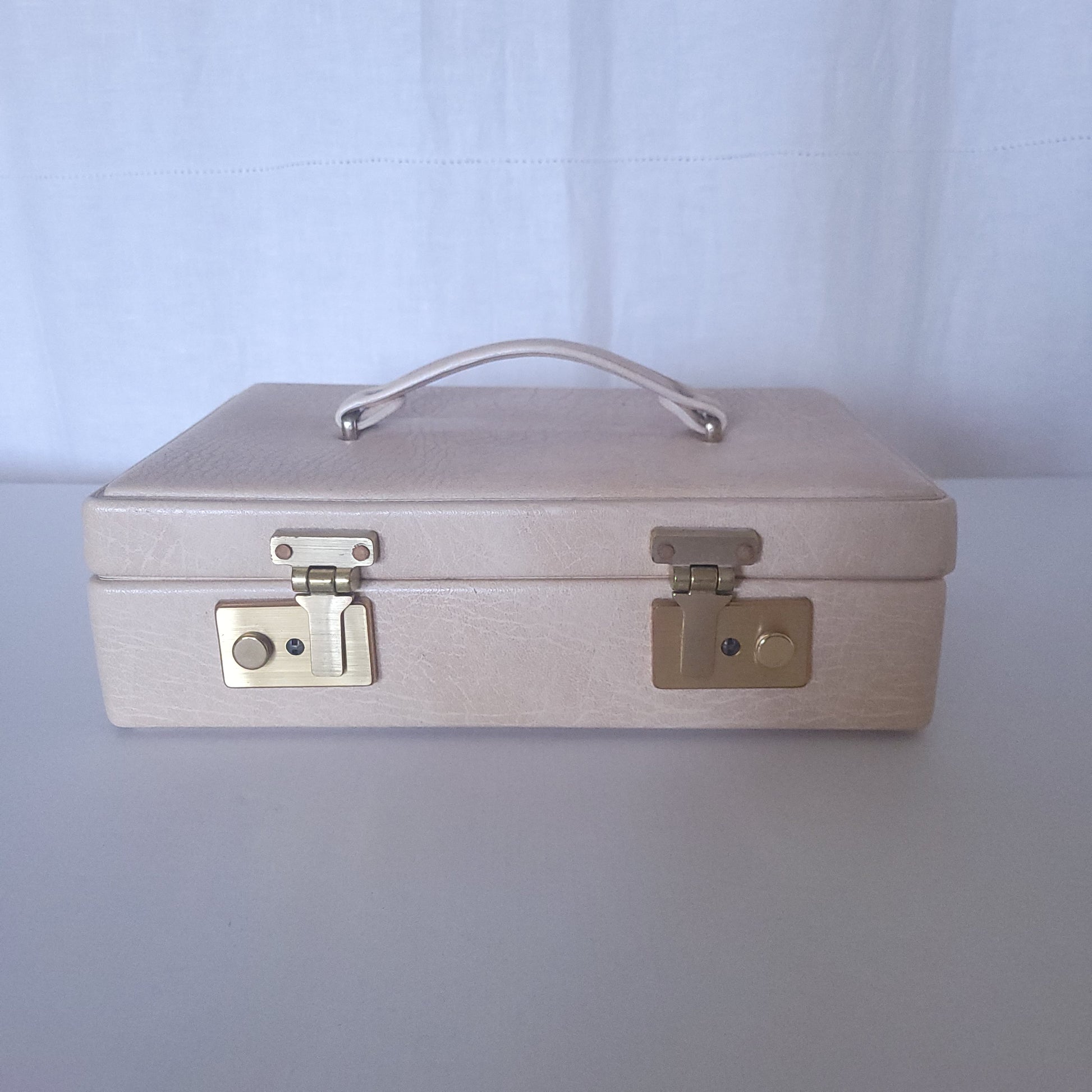 Cette mallette à bijoux en skaï, datant des années 70, vintage et pratique.Elle est idéale pour ranger et protéger vos bijoux en voyage ou à la maison. Son design rétro apporte une touche d'authenticité à votre collection d’accessoires.