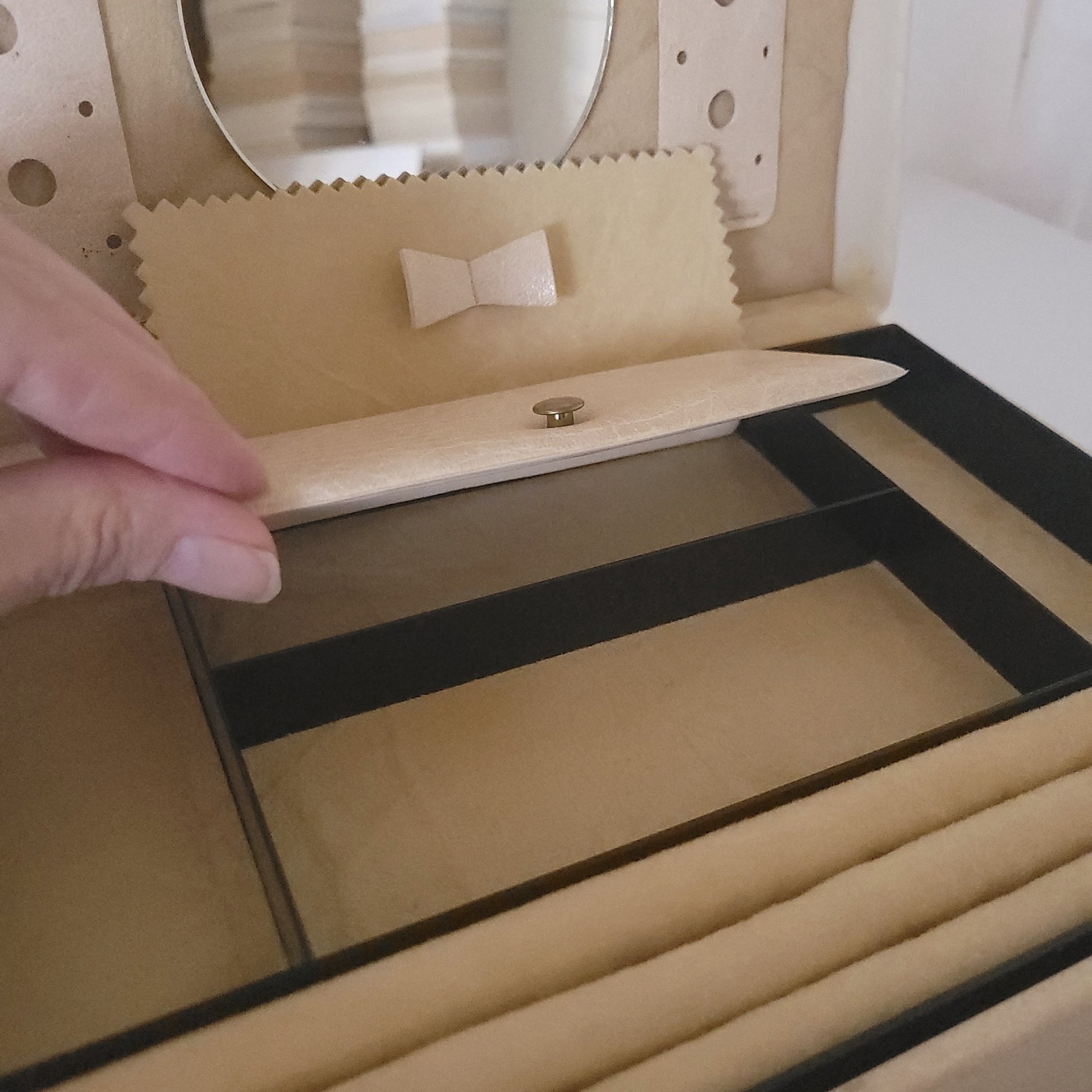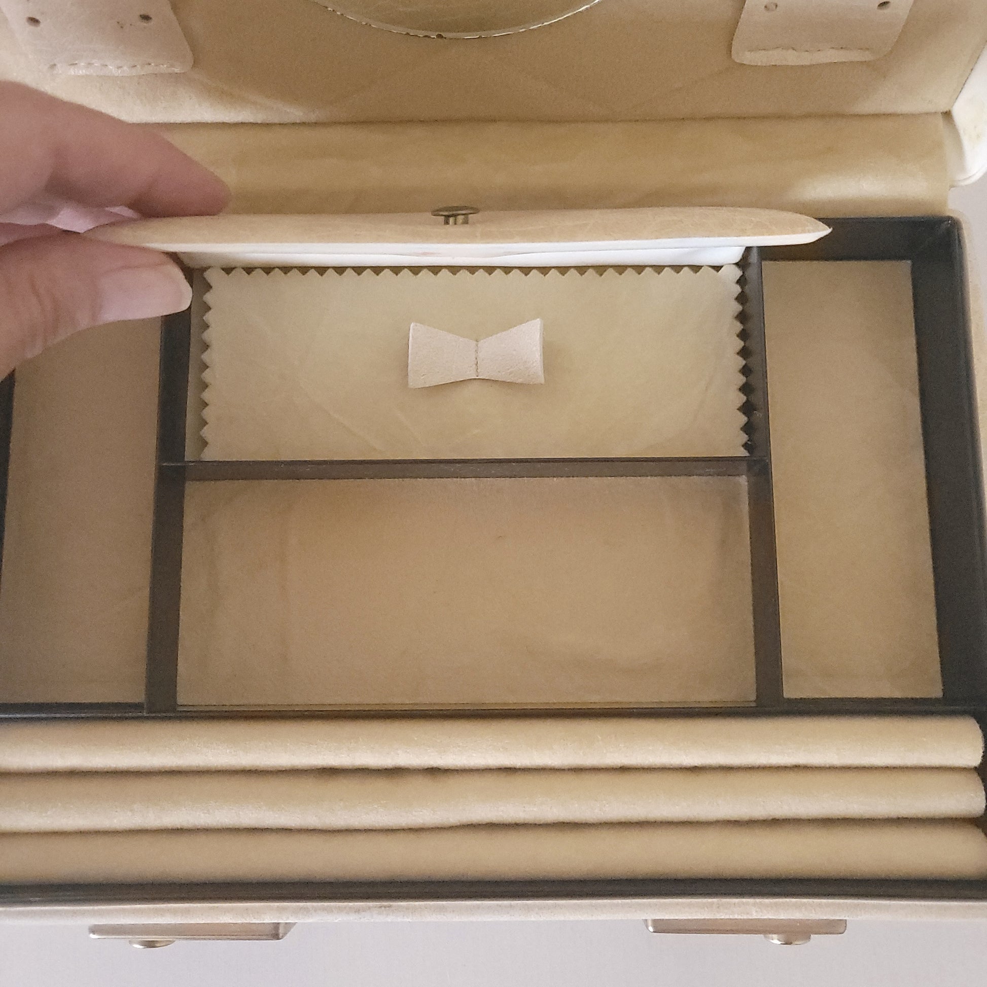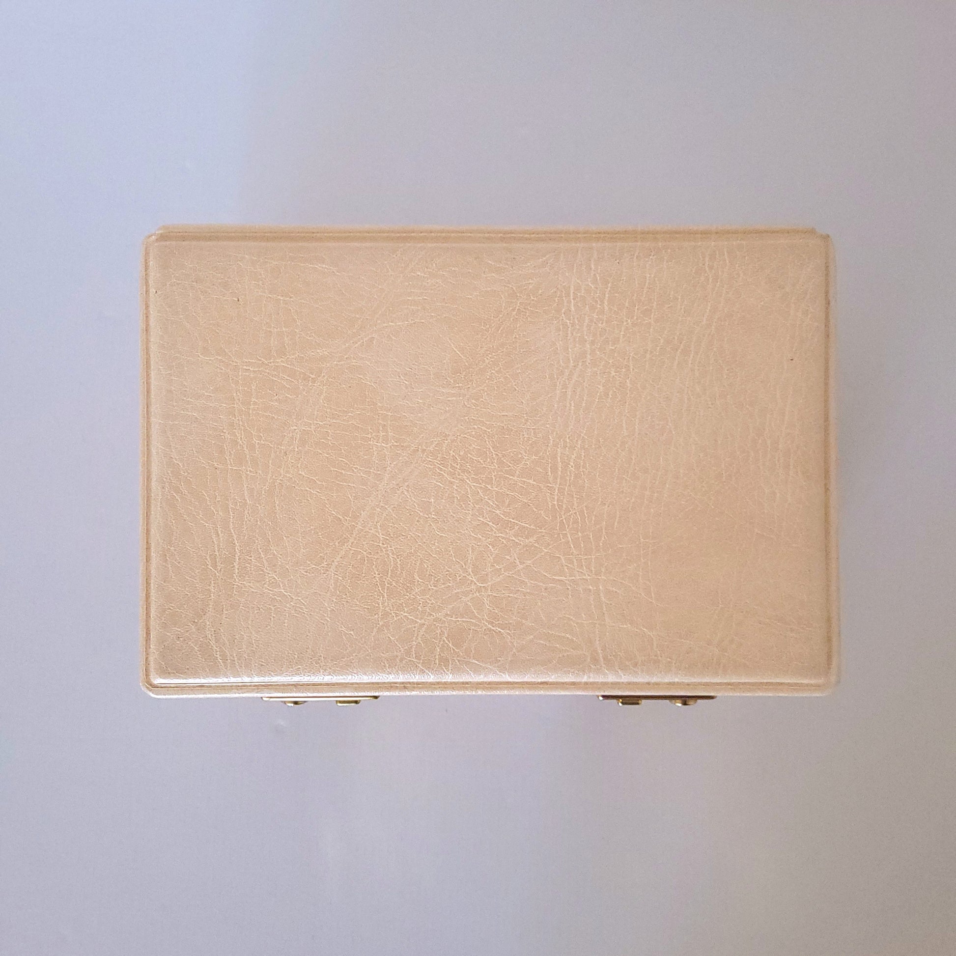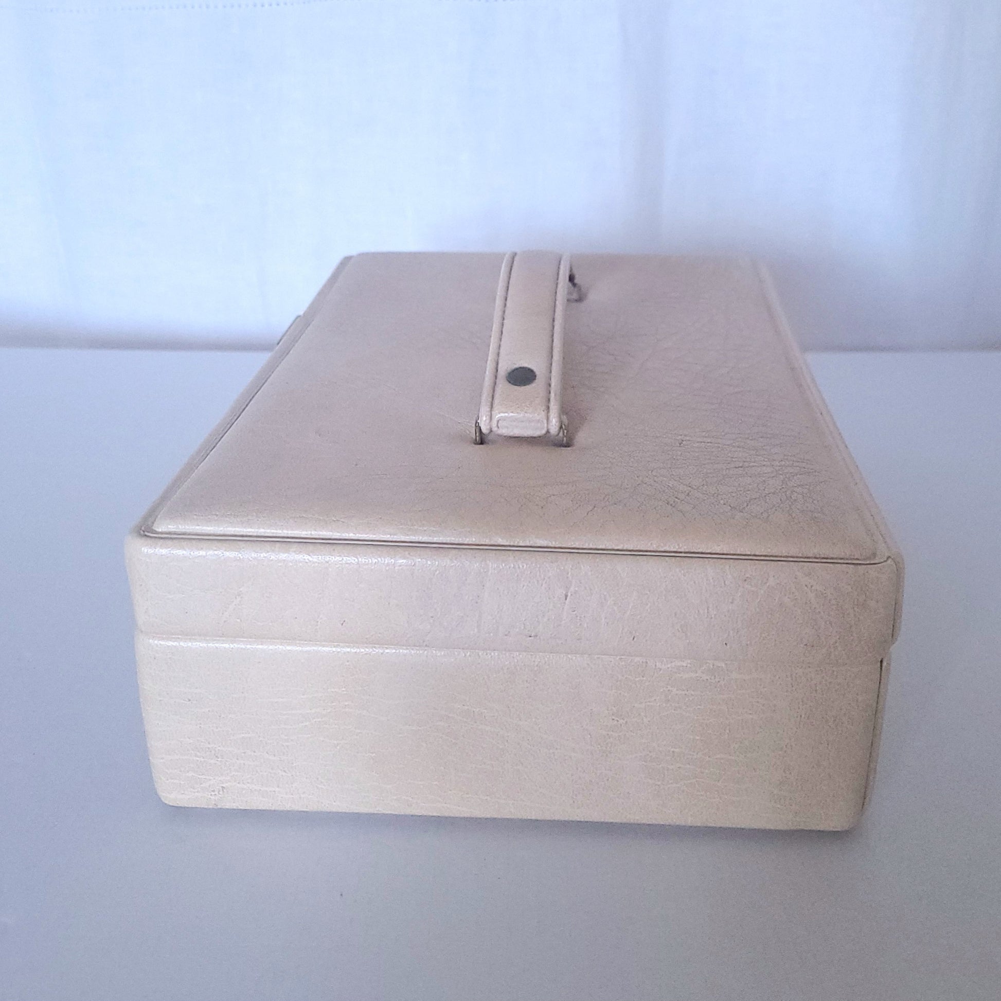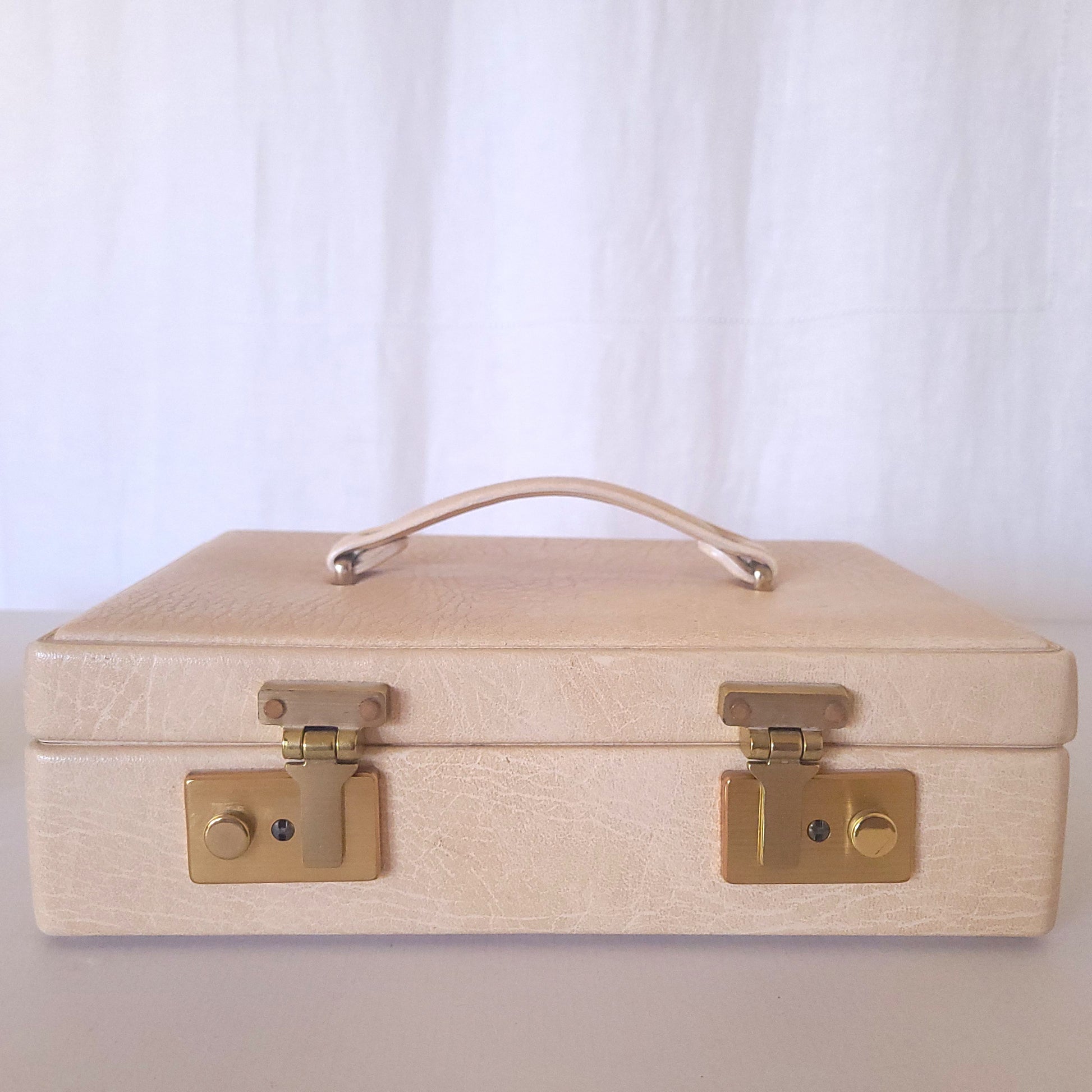 Cette mallette à bijoux en skaï, datant des années 70, vintage et pratique.Elle est idéale pour ranger et protéger vos bijoux en voyage ou à la maison. Son design rétro apporte une touche d'authenticité à votre collection d’accessoires.