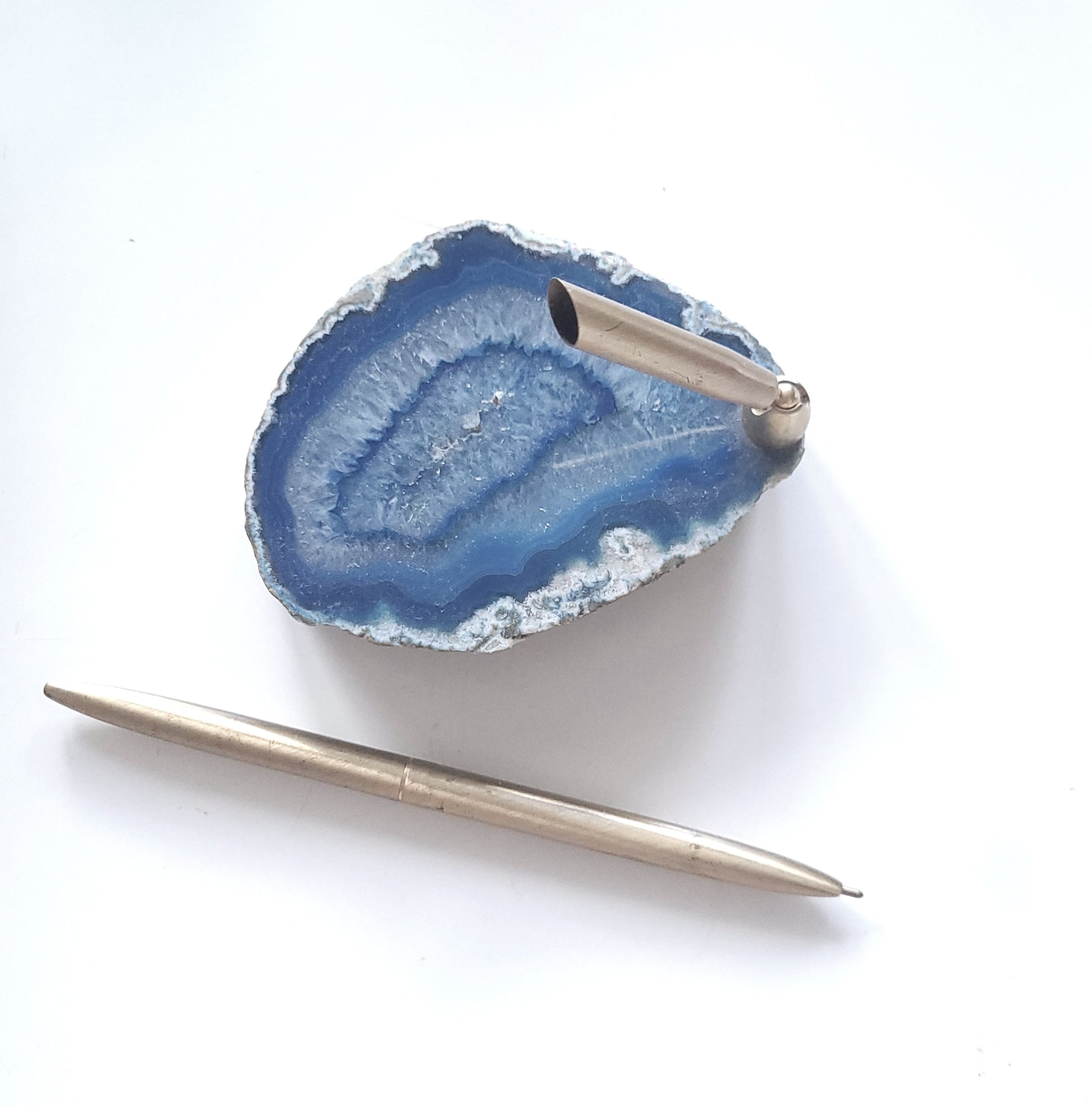 Porte stylo en agate bleue avec son stylo. Année 60.