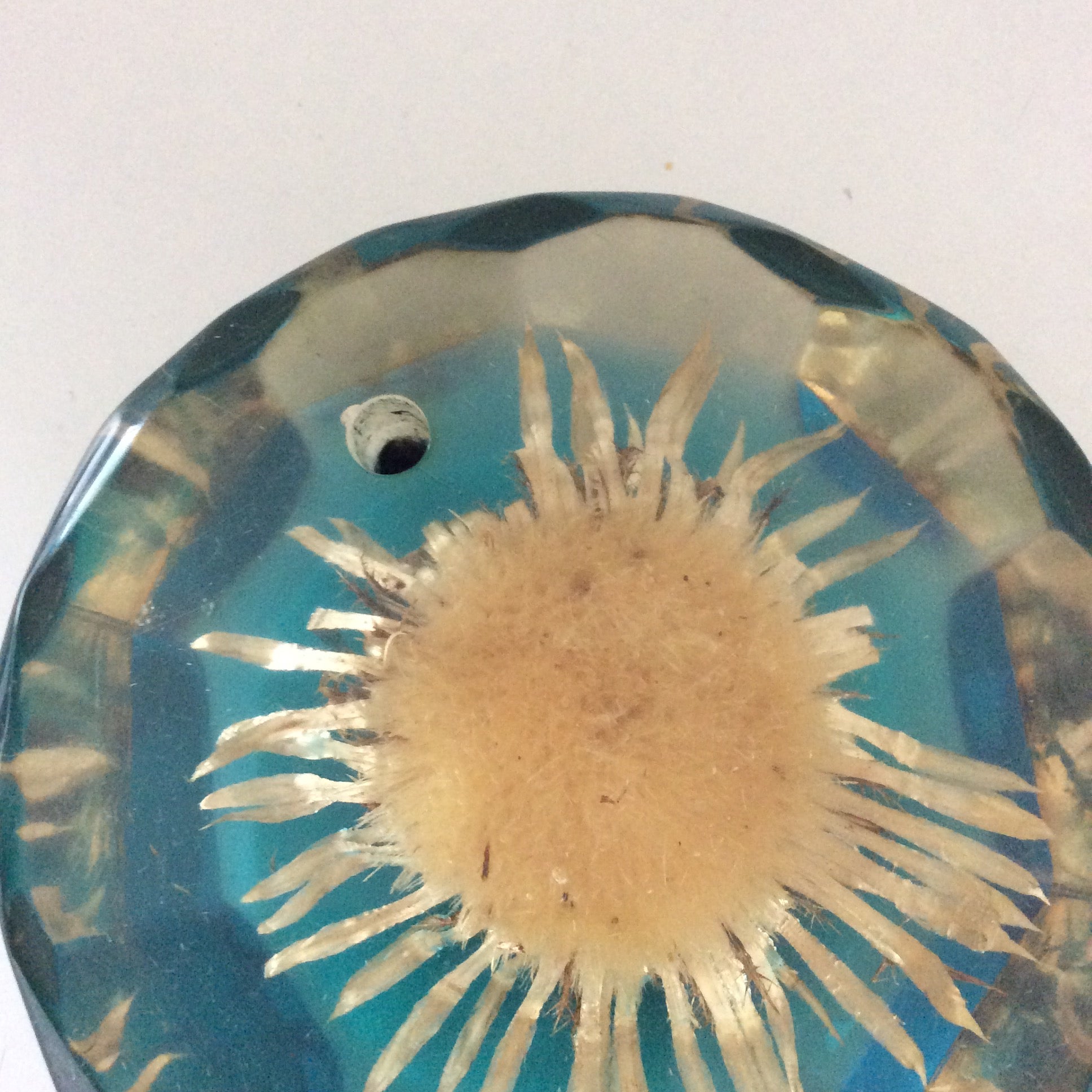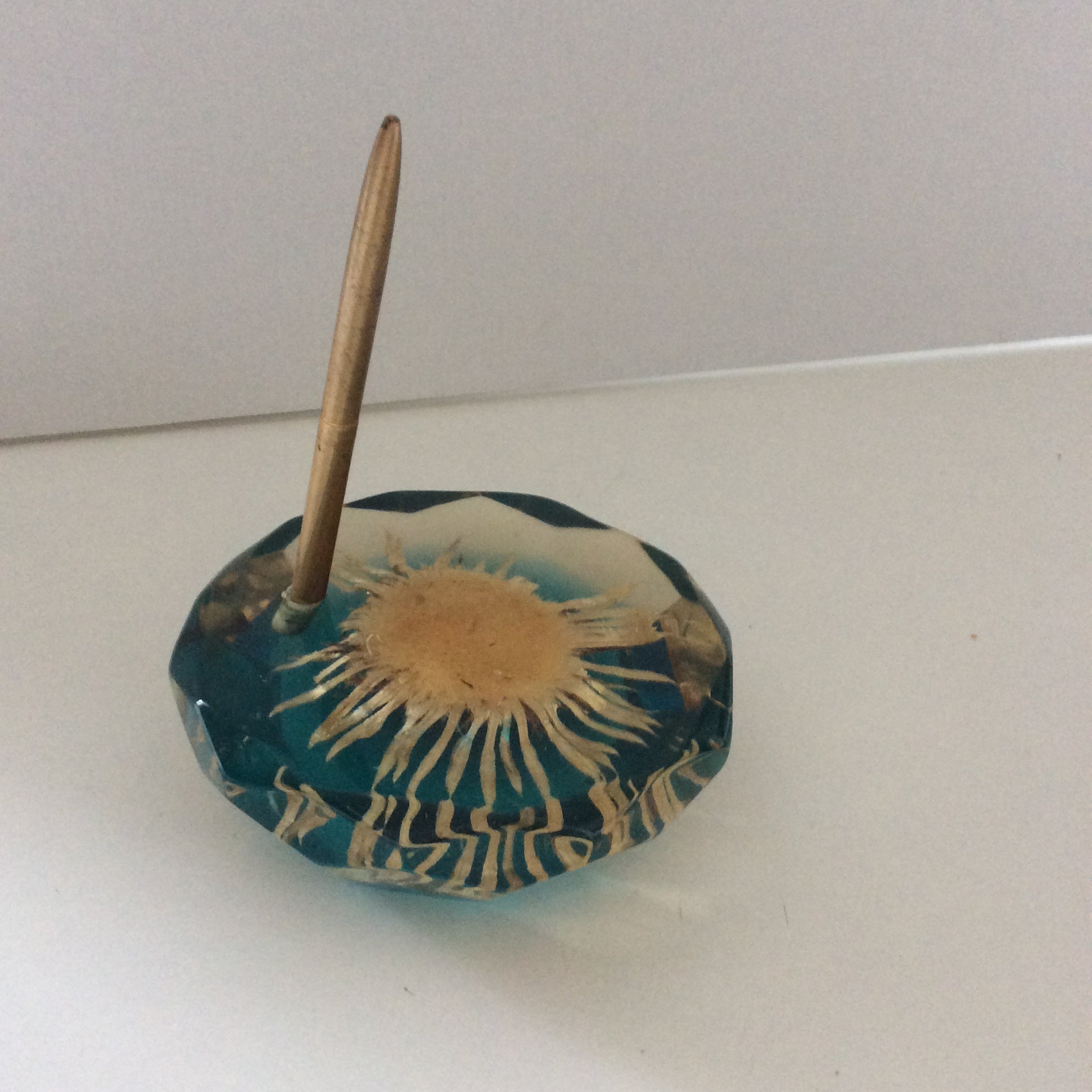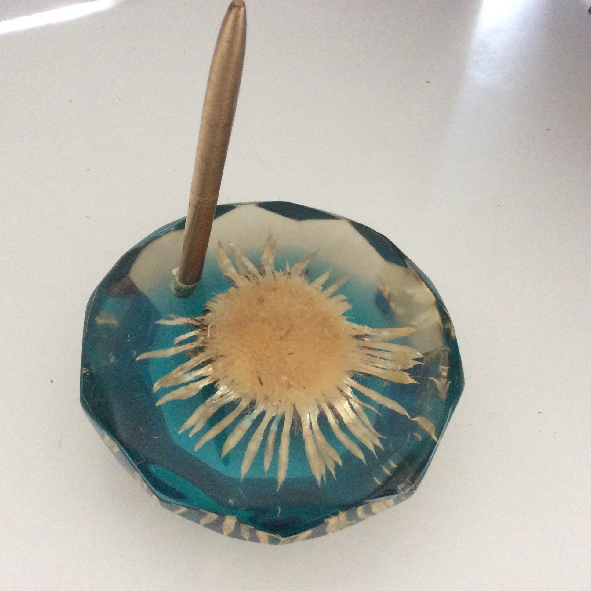 Porte stylo en résine, inclusion fleur. Années 60.