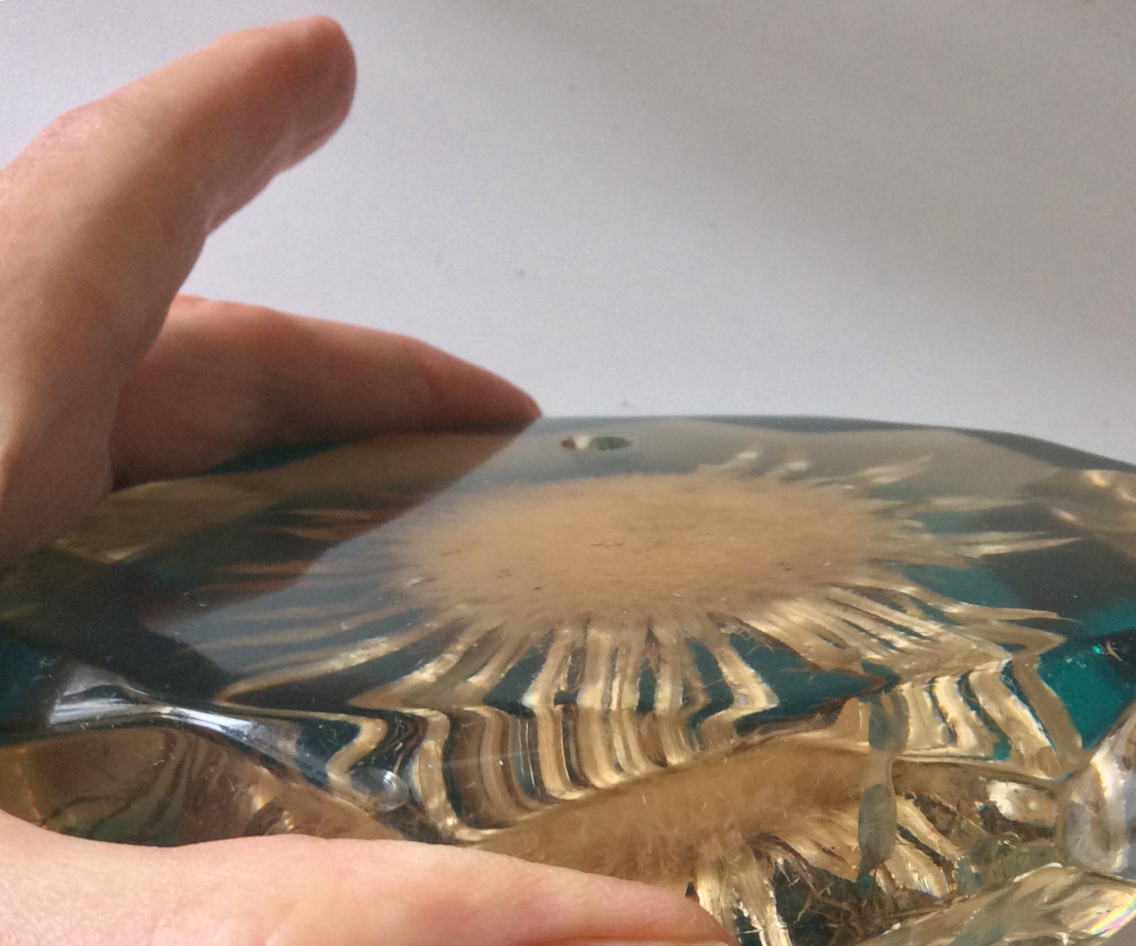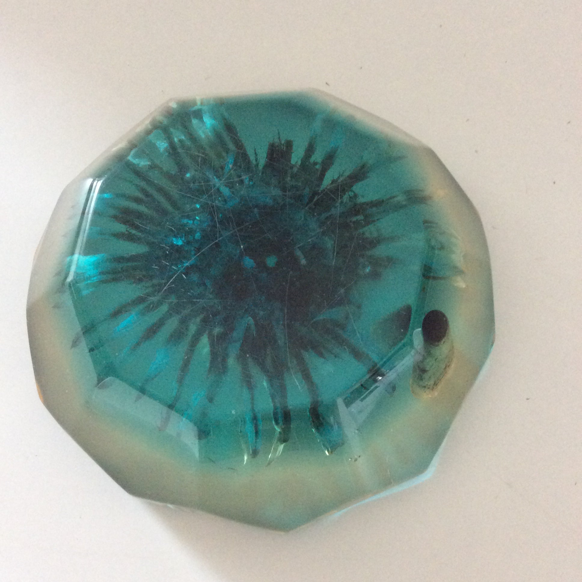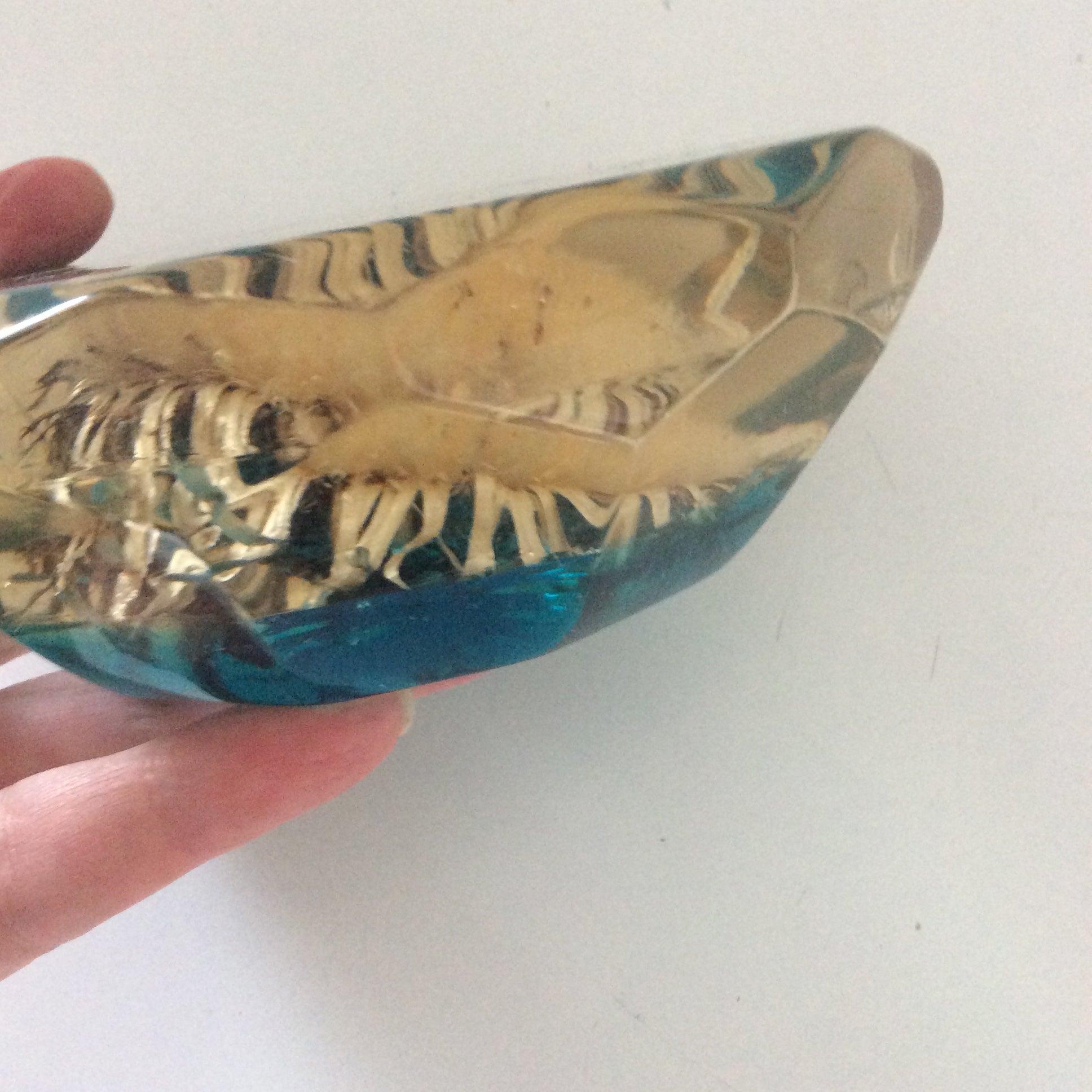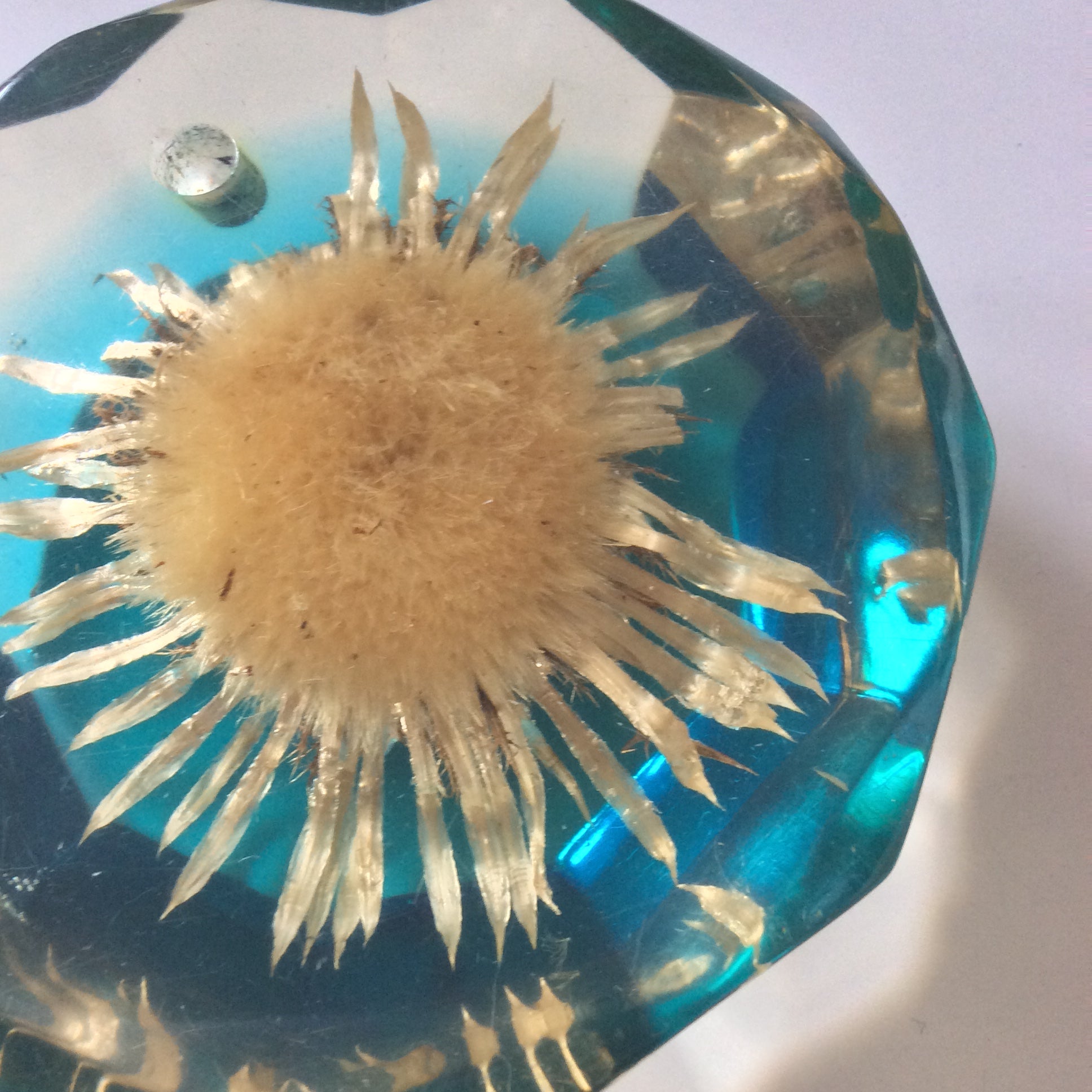 Porte stylo en résine, inclusion fleur. Années 60.