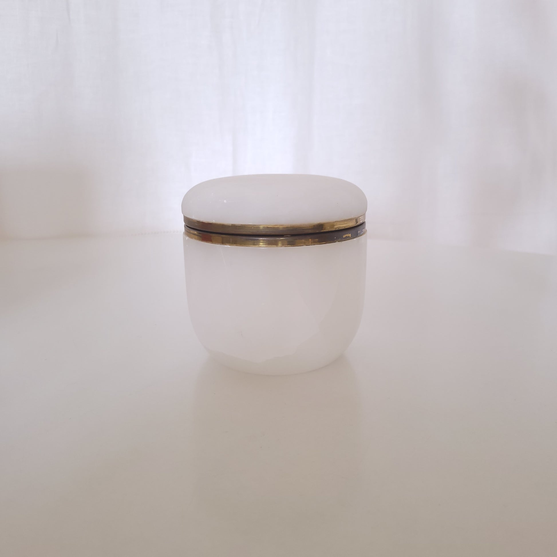 Sa matière minérale unique offre une texture douce et légèrement translucide, idéale pour conserver vos objets précieux avec raffinement.