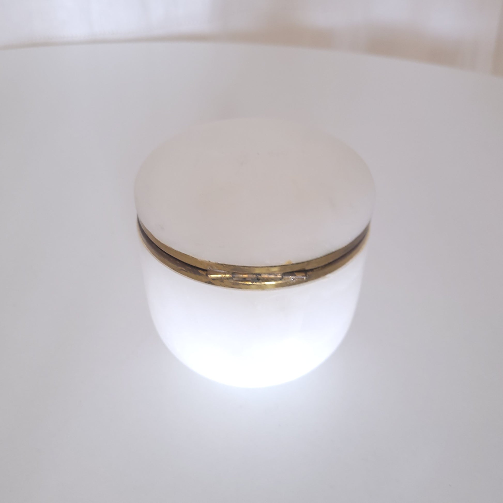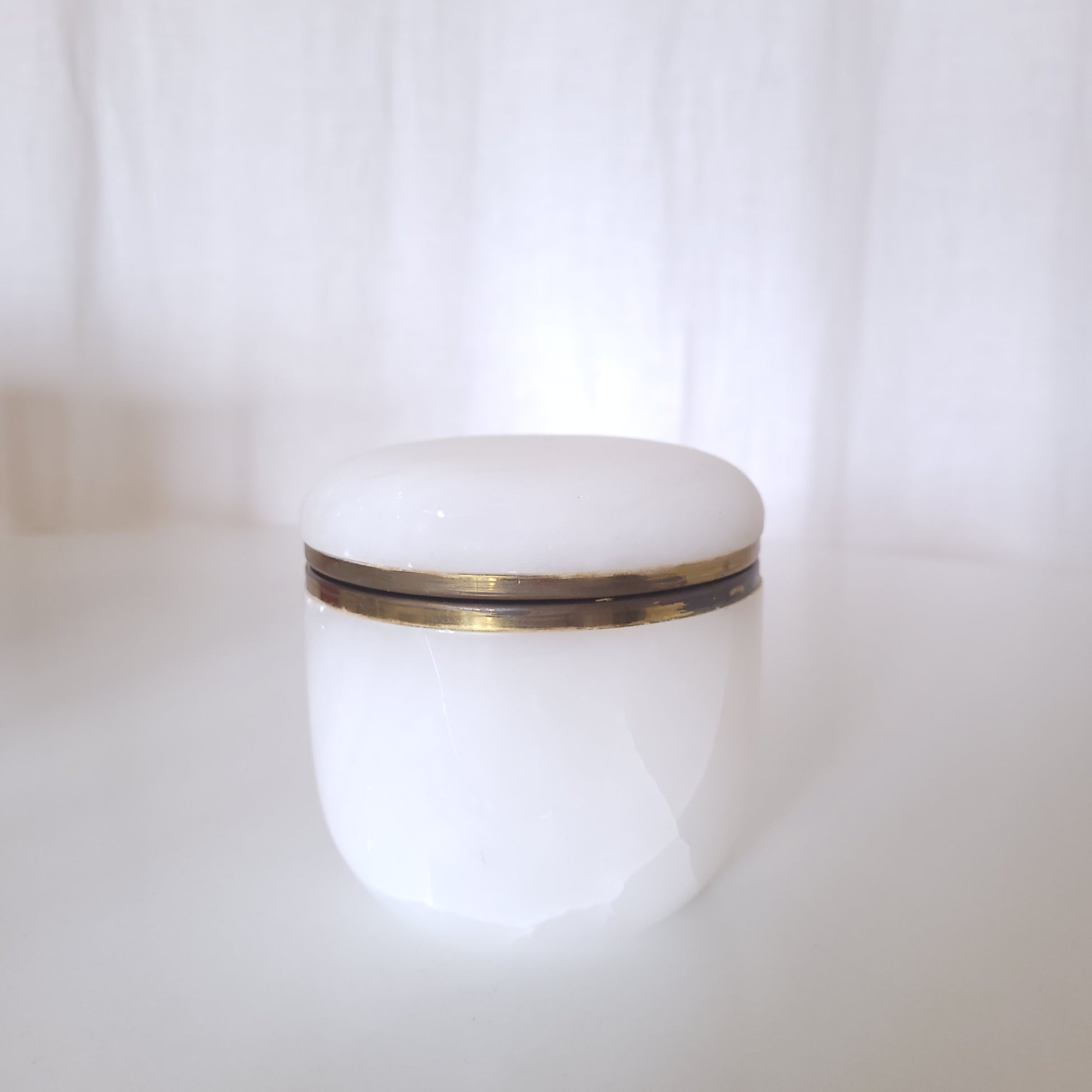 Cette boîte ronde en albâtre allie élégance naturelle et artisanat.