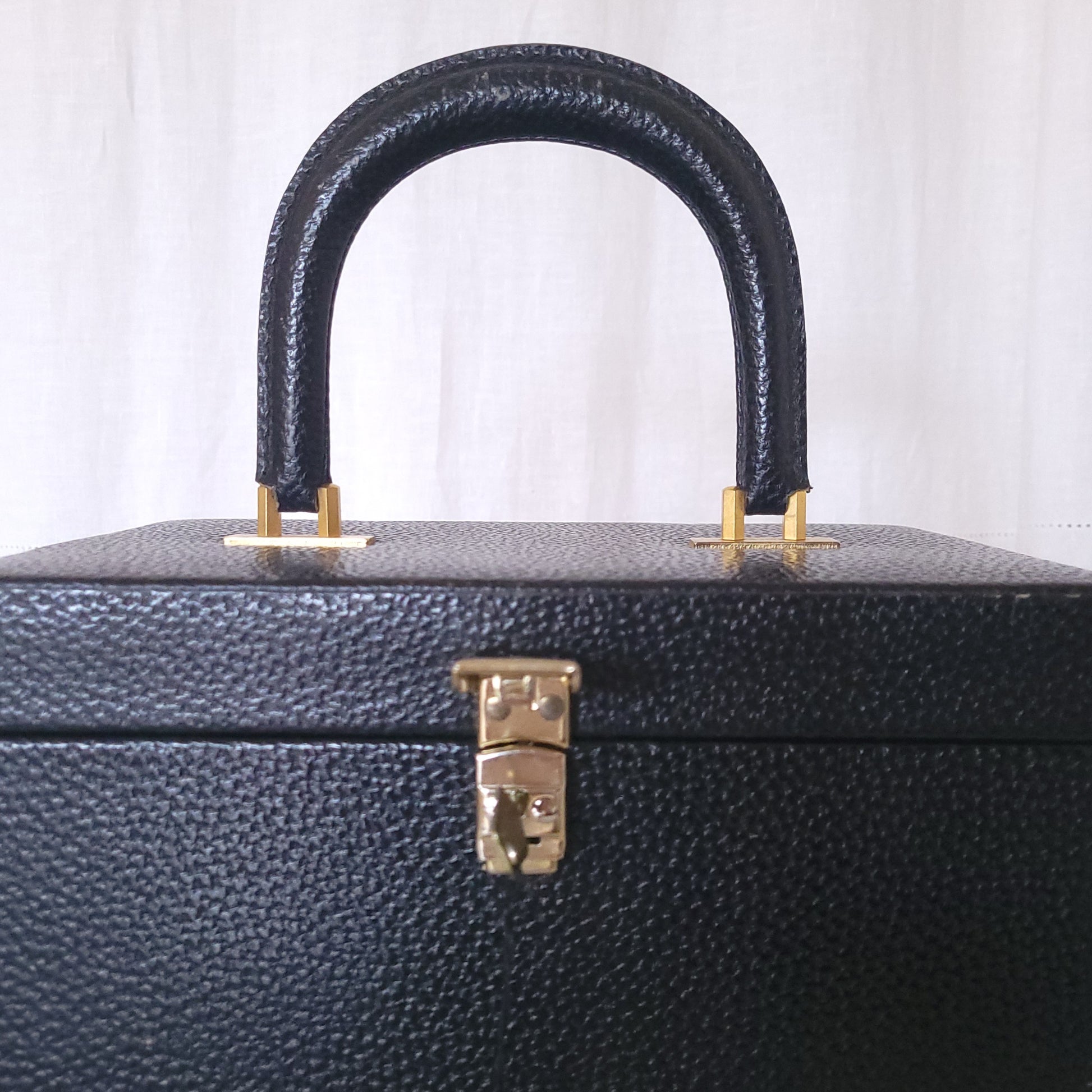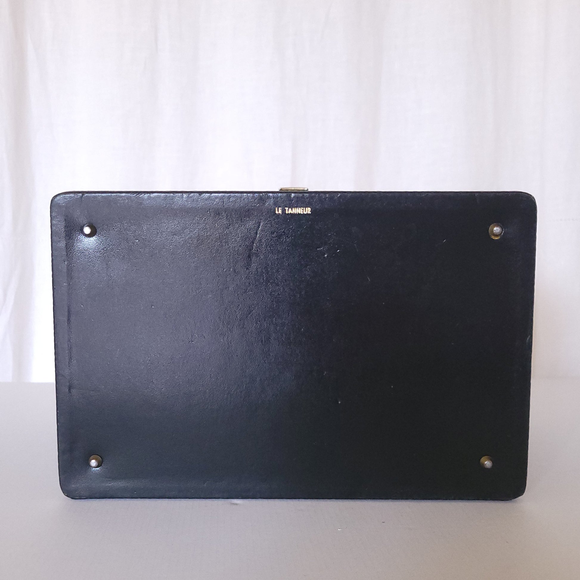 Vanity case gansé de cuir "LE TANNEUR" des années 60 allie élégance et fonctionnalité.Miroir biseauté et clefs.